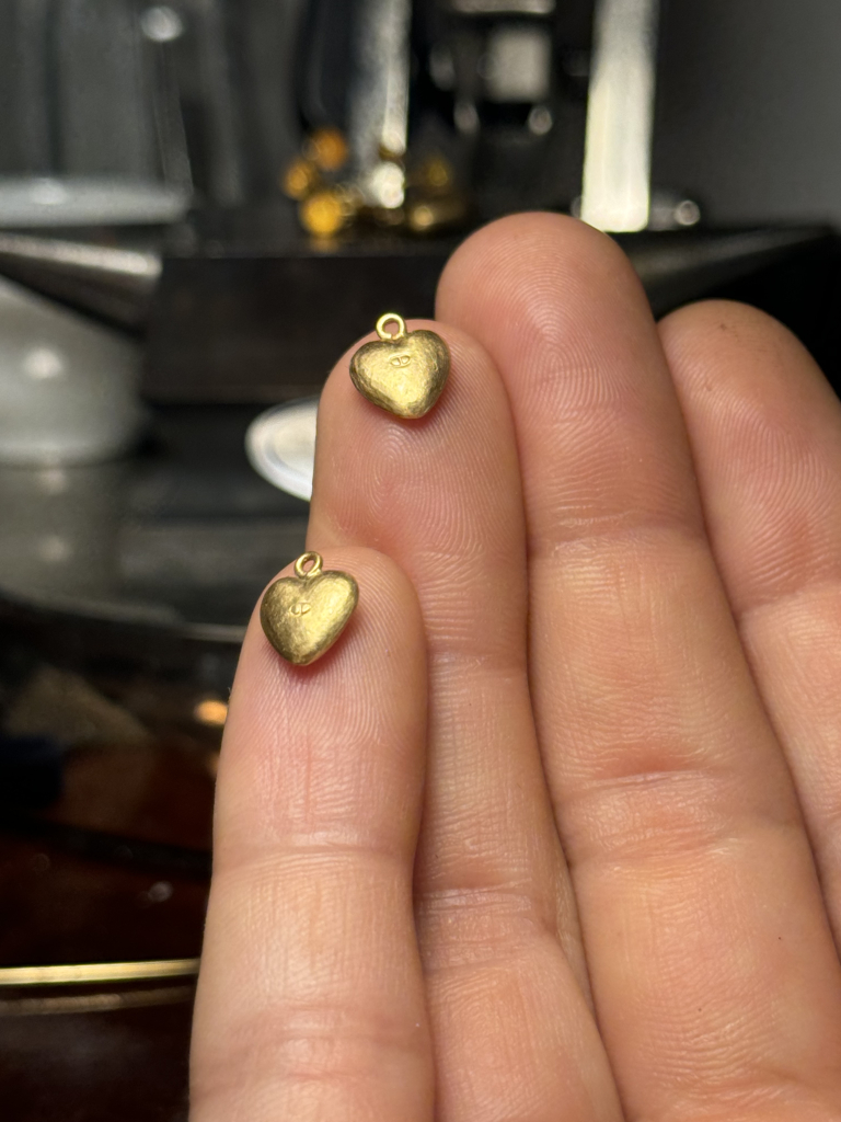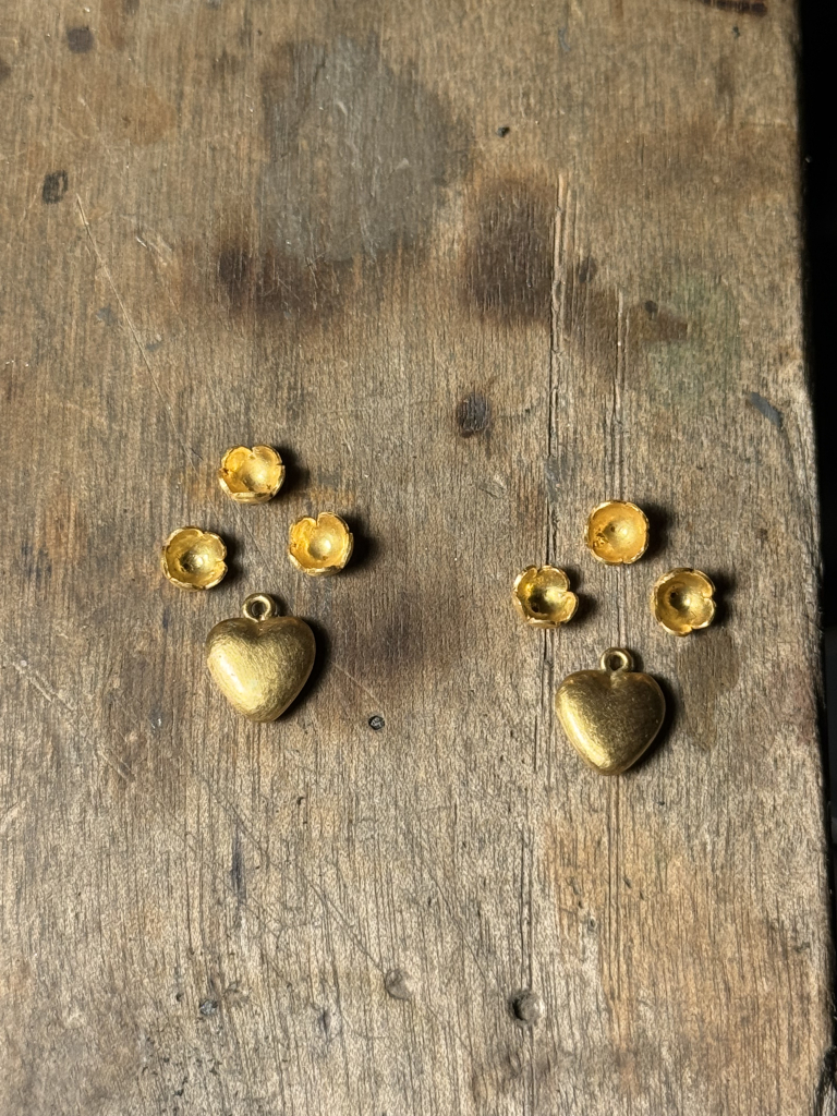 These 22-carat gold earrings depict a heart motif from which stylised flowers emerge. The heart—one of the most enduring symbols in the history of iconography—appears here as a life-giving form associated with ideas of growth and development rooted in love. The design draws upon traditional symbolic representations, avoiding literalism in favour of poetic form.