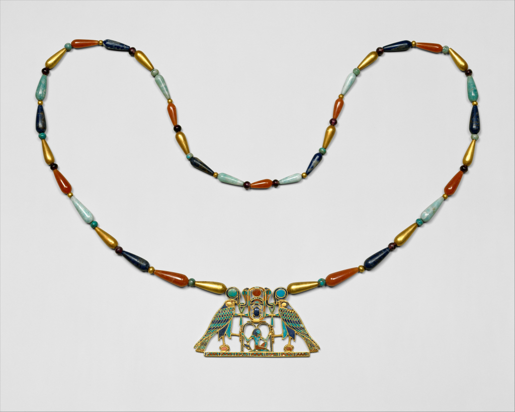 W starożytnym Egipcie z turkusu wykonywano drobne przedmioty, takie jak amulety, koraliki oraz inkrustacje zdobiące biżuterię. Jasnoniebieski turkus wraz z czerwonym karneolem (lub jaspisem) i ciemnoniebieskim lapis-lazuli tworzyły jeden z najpopularniejszych schematów kolorystycznych w kraju nad Nilem. Kombinacja ta cieszyła się wielką popularnością w okresie Średniego Państwa. Wspaniałym przykładem tego typu intarsjowanej biżuterii jest pektorał i naszyjnik księżniczki Sithathoriunet z około 1887–1813 p.n.e., odnaleziony w kompleksie piramid w Kahun. Uchodzi on za arcydzieło gatunku i jedną z najwyższej jakości ozdób, jakie kiedykolwiek odkryto w grobowcach starożytnego Egiptu.
