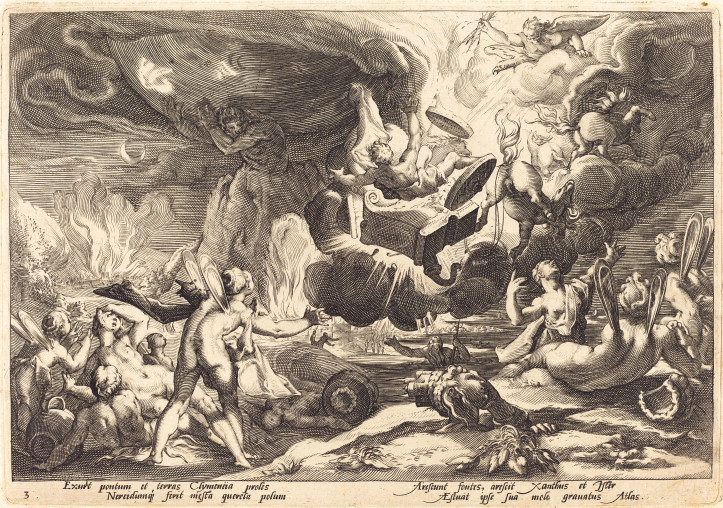 O poranku Faeton radośnie wyruszył w podróż po nieboskłonie. Jednak ogniste konie ciągnące rydwan, nie czując ciężaru Słońca, uznały powóz za pusty. Wymknąwszy się spod kontroli Faetona, zboczyły z kursu, czyniąc ogromne spustoszenie na Ziemi. Płomienie jadącego zbyt nisko rydwanu ogarnęły grunty, spaliły wzgórza, pola i lasy, wysuszyły rzeki, Libię zmieniły w pustynię, a mieszkańcom Etiopii poczerniły skórę. Dziką pogoń koni przerwała sama Ziemia, która zawołała na pomoc Jowisza – ten, nie mając wyboru, cisnął piorunem w rydwan. Strącony z nieba Faeton, płonąc, wpadł w nurt Erydanu.