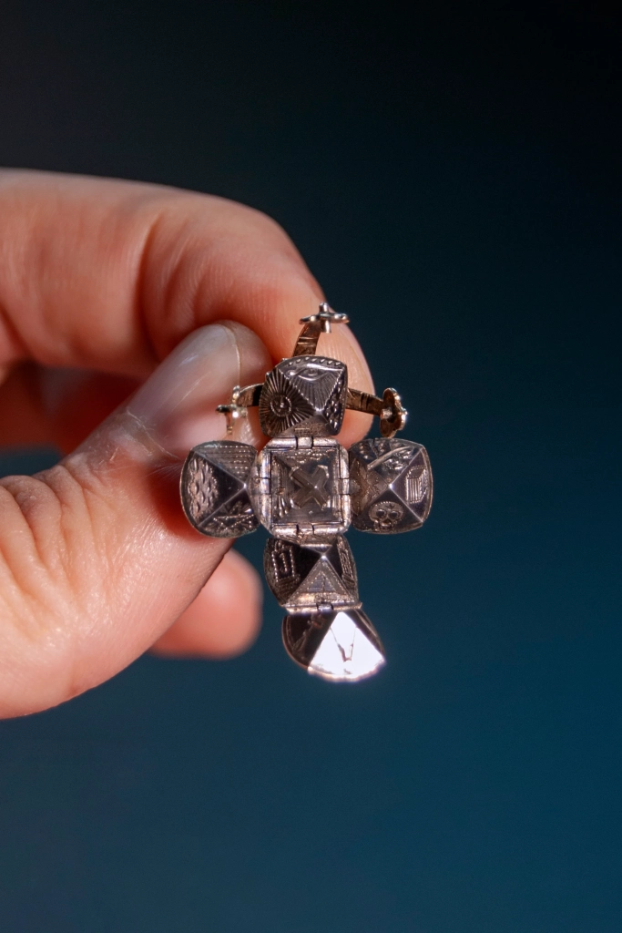 Ozdoby te są wytwarzane do dziś, ale najpiękniejsze ich okazy pochodzą z XIX w. Na pierwszy rzut oka taki brelok wydaje się prostą złotą kulką ozdobioną czterema klamerkami oraz kółeczkiem do zawieszania. Jednak dzięki pomysłowemu rozmieszczeniu zawiasów, gdy klamerki zostaną zwolnione, kula otwiera się, tworząc kształt krzyża. Każdy z sześciu segmentów tego krzyżyka ma kształt piramidy z kulistą podstawą. Podstawa piramidy była najczęściej złota lub złocona, a jej ściany wykonano z czernionego srebra. Każda płaszczyzna każdej z piramid naznaczona była wygrawerowanym symbolem – w sumie było ich więc 24.
