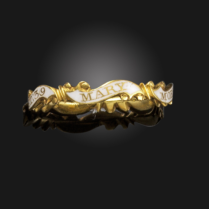 W 1742 r. pisarz Edward Young wydał nowy poemat Myśli nocne: treny, albo myśli nocne o życiu, śmierci i nieśmiertelności. Niezwykła popularność tego dzieła niemal na pewno jeszcze wzmogła zainteresowanie biżuterią żałobną. W tym samym czasie – pod wpływem estetyki rokoka – kryształowe elementy żałobnych pierścieni uległy zmniejszeniu, przybierając często wymowne, ornamentyczne kształty, np. maleńkich trumien. Bardziej fantazyjnych form nabrały także obrączki pierścieni. Przypominały wstęgi lub zwoje, na których grawerowano pamiątkowe napisy poświęcone zmarłej osobie. Niektóre pierścienie ozdabiano miniaturkami ludzkich szkieletów z kości słoniowej, emalii lub papieru. Oprawę nadal tworzono w barwach czarnej i złotej, choć wyjątek stanowiły emaliowane na biało pierścienie poświęcone dzieciom i osobom przed ślubem.