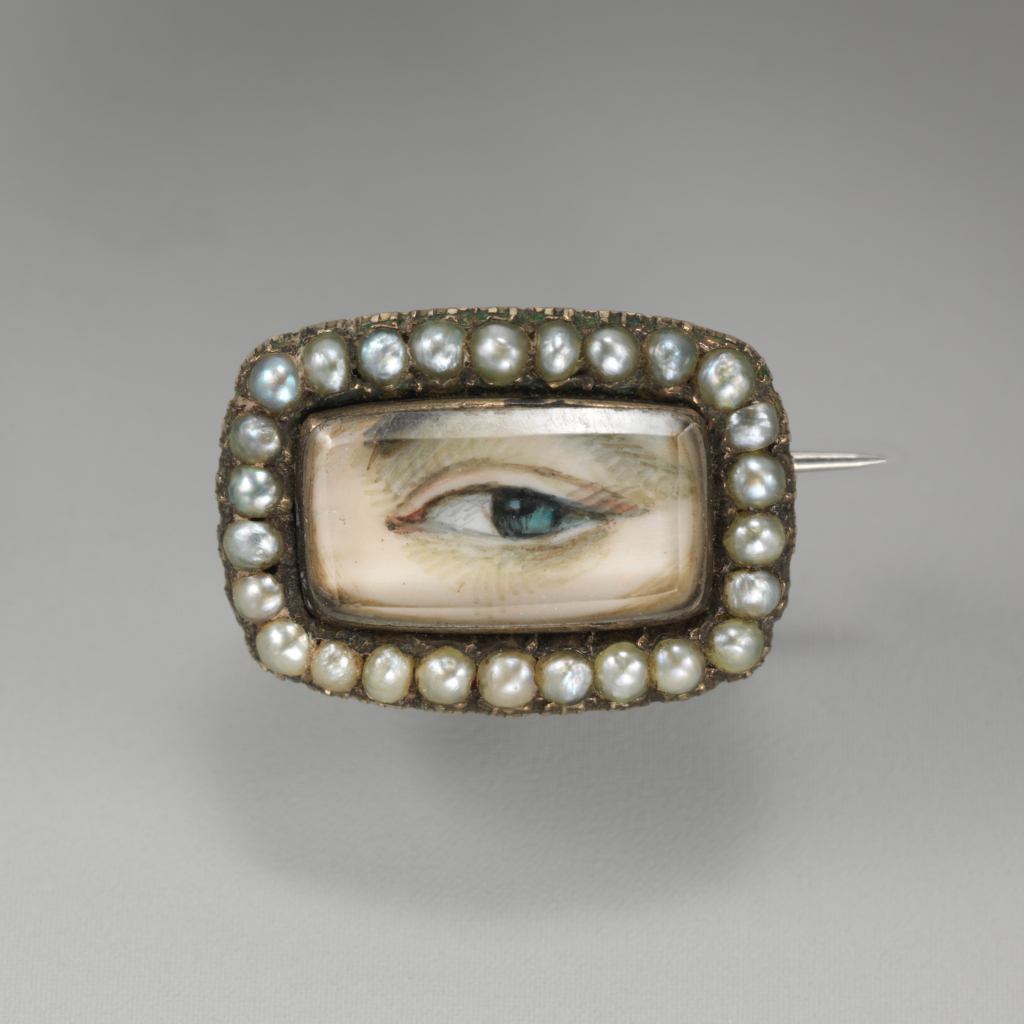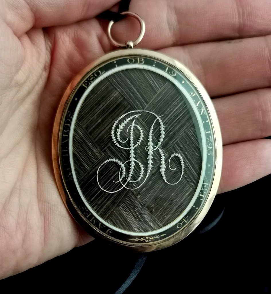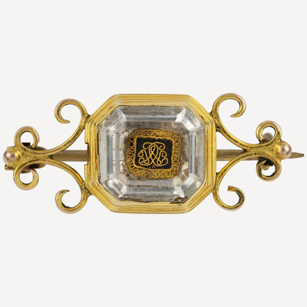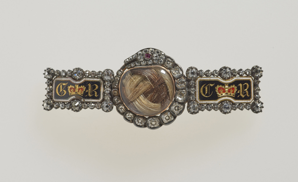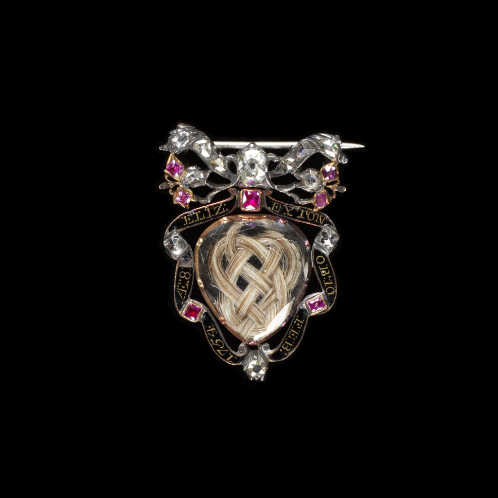 U schyłku XVII w. mało kto miał dostęp do emaliowanych lub malowanych miniatur, dlatego wybierano raczej inne rozwiązania identyfikujące ozdobę ze zmarłą osobą. Obok inicjałów, inskrypcji i związanej ze śmiercią ikonografii wybór padał najczęściej na włosy. Z wielką precyzją umieszczano je w pierścieniach, zawieszkach, broszkach, kolczykach, a nawet spinkach do mankietów. Charakterystyczne dla tego okresu były klejnoty ozdobione płaskim kryształem o fasetowanych bokach przykrywającym kompozycję misternie plecionych włosów zmarłej osoby, ozdobionych maleńkim monogramem ze złotego drutu. Ze względu na swoją proweniencję dziś ozdoby te nazywane są kryształami Stuartów.