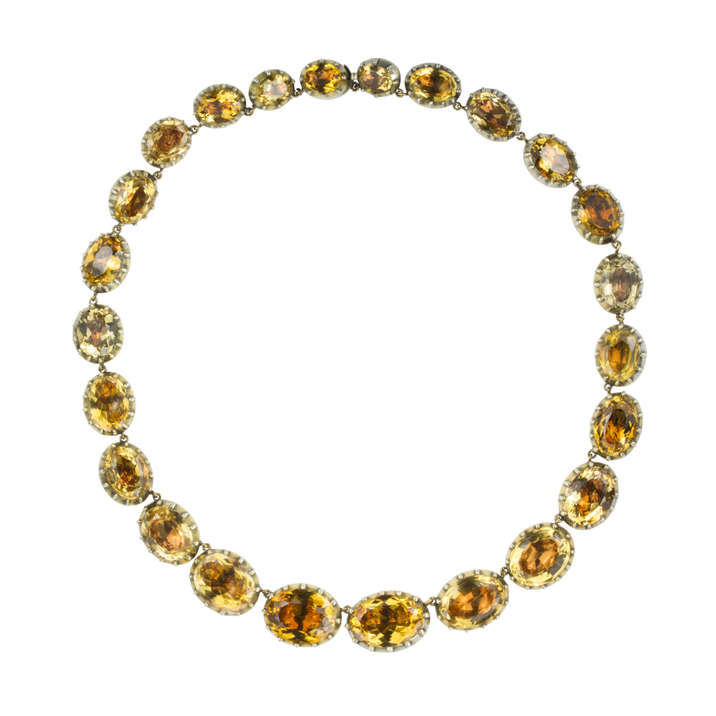 Nocą na salonach królowały diamenty. Za sprawą nowo odkrytych złóż w Indiach oraz Brazylii były o wiele łatwiej dostępne. Jednak prawdziwa brylantowa fala zalała Anglię wraz z przybyciem emigrantów ratujących się przed rewolucją francuską. Skorzystał na tym największy brytyjski miłośnik tych kamieni – książę Walii. Przyszły król nie szczędził środków na biżuterię oraz przyjęcia. Wydawane przez niego bale przeszły do historii z racji swego przepychu i wyszukanych strojów. Damy goszczące na tych wieczornych spotkaniach zakładały opływające szyję, modne naszyjniki w stylu rivière lub przywdziewały zestawy klejnotów – określane mianem parure. Znane są również opowieści o modnych arystokratkach zamawiających na królewskie przyjęcia przebrania w całości wyszywane klejnotami.